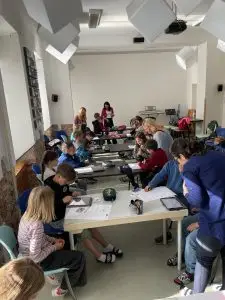 Projektarbeit zum Thema Sport; Olympiade; Erkunden zu olympischen Sportarten, Erstellen mehrsprachiger Plakate, Recherchen im Internet, Gestaltung – Stadterkundung mit Besuch der unterirdischen Gängen unter der Altstadt /Museum Tábor